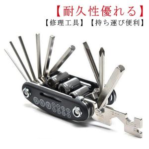 軽量 マルチツール 多機能自転車修理キット 16in1 タイヤパッチ 応急修理用 自転車用工具セット メンテナンス コンパクト 16in1 バイク 多