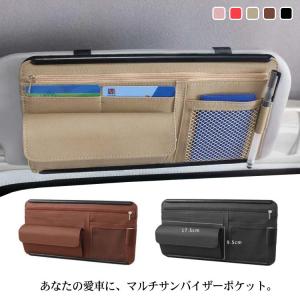 バイザーポケット 送料無料 車用 収納 ポケット サンバイザー 小物 収納 ポケット PUレザー ファスナー付き インナーポケット付き サングラス E