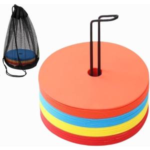 マーカーコーン カラーマーカー 30枚 棒あり サッカー フットサル 練習用 陸上 トレーニングコーン 目印 スポーツ 収納袋付き ((S