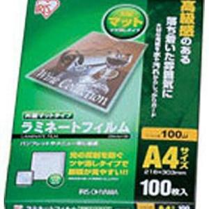 アイリスオーヤマ ラミネートフィルム片面マット100マイクロメートル(A4サイズ) LZM-A4100 - 0501-4905009710263-ds -お取り寄せ品-
