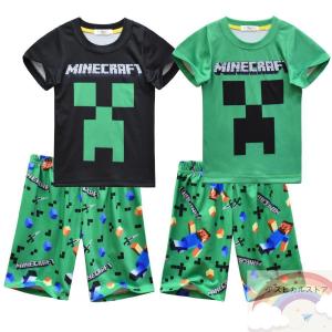 パジャマ 上下セット マイクラ クリーパー ジャージ 総柄 モザイク 半袖 MINECRAFT マインクラフト 子供服 半袖パジャマ 男の子 パジャマ 110-150