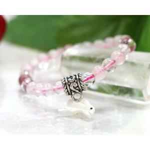 キッズブレスレット インカローズ ローズクォーツ ロードナイト 水晶 天然石 ブレスレット パワーストーン マザーオブパール うさぎ