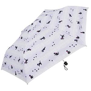 オカモト原宿店 ランドセルに入る かる*いミニ傘 子供用折りたたみ傘 約210g 猫とボーダーレース (パープル)