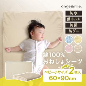 防水シーツ おねしょシーツ 防水 抗菌 防ダニ コット小 60×100 2枚入 綿100% 四隅ゴムバンド パイル地 マットレス 敷き布団 入園 保育園