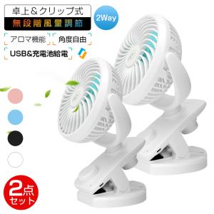 400円OFFクーポン 2点セット 扇風機 おしゃれ ベビーカー 48時間連続使用 静音 強力 卓上扇風機 首振り USB扇風機 クリップ 軽量 節電 アウトドア