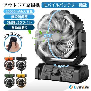 400円OFFクーポン 扇風機 卓上 首振り 卓上扇風機 アウトドア 20000mAh モバイルバッテリー機能 LEDライト 充電式 吊り下げ 防災 キャンプ サーキュレーター