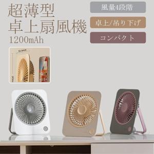 卓上扇風機 充電式 小型扇風機 吊り下げ 壁掛け 薄型 静音 上下角度調整 風量5段階 残電量表示 熱中症対策 持ち運び 通勤 通学 観戦 旅行
