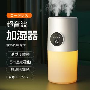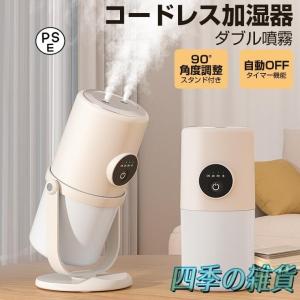 卓上加湿器 コードレス 加湿器 小型 卓上 ダブル噴霧 280ml 空焚き防止 タイマー スタンド付 90°角調整 ライト付 静音節電 USB 充電式