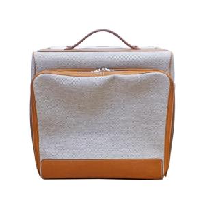 【天白】エルメス キャリーバッグ スーツケース トワル×レザー ナチュラル系 キャスター2脚 旅行鞄 □Q刻印 2013年製