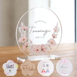 【3/3に間に合う!】くすみカラー マリ桜の金襴名前旗 (小) 25cm 命名旗 京都金襴