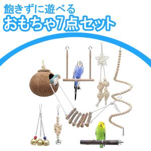 インコ おもちゃ 7点セット バードトイ 天然木 鳥のおもちゃ 止まり木 かじり木 ブランコ 吊り下げ 噛む玩具 ココナッツ ハウス セキセイインコ 遊び場