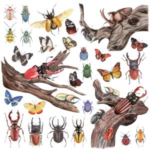 ウォールステッカー 昆虫 カブトムシ クワガタ 日本製 水彩 蝶 オオクワ ヘラクレス コーカサス ノコギリ シール 壁紙 子供部屋