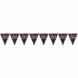 (クリエイティブ・パーティー) Creative Party ピンク 60歳の誕生日 Happy Birthday バナー ペーパーガーランド 旗飾り S