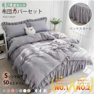 布団カバー セット フリル ベッドスカート セット シングル セミダブル ベッドカバー ウォッシャブル 3/4点セット 無地 寝心地 肌触り 姫風 可愛い 丸洗い 柔ら