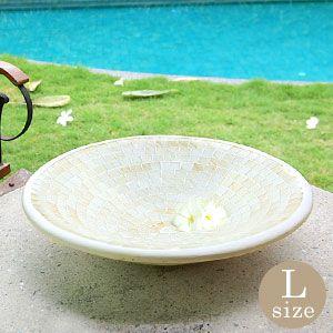 アジアン雑貨 モザイクガラスの白くて丸いプレート L アジア工房 10130