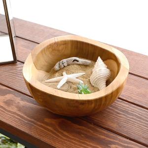 ウッドボウル プランター トレイ 小物入れ 木製 天然チークウッド Mサイズ 西海岸 男前 アジア工房 11588