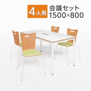 法人様限定 ミーティングテーブルセット 4人用 フリーアドレスデスク 会議用テーブル 1200×600 + エルモサ ミーティングチェア 4脚セット