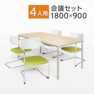 法人様限定 会議テーブルセット 4人用 テーブル チェア 会議テーブル 1800×900 カンチレバーチェア ZARMAS2 4脚セット 会議室 打ち合わせ 商談 業務用