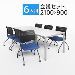 法人様限定 6人用 会議セット テーブル 2100×900+チェア プレソナ 6脚