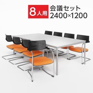 法人様限定 会議テーブルセット 8人用 テーブル チェア 会議テーブル 2400×1200 メッシュチェア 肘なし キャスター付き 8脚セット
