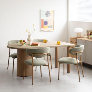 設置無料 4人用 ダイニングテーブルセット 5点(幅1600mm 変形テーブル×1 食卓椅子×4) 板座チェア 変形半円 楕円 モルタル風 コンクリート調 北欧 モダン
