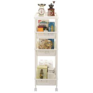 キッチンワゴン バスケットワゴン キャスター 収納ボックス おもちゃ箱 W55×D35.5×H86.5 ホワイト PW-54WH 東谷