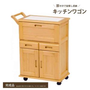 萩原 キッチンワゴン MW-3709NA ナチュラル キッチン収納 木製 タイル天板 扉付 キャスター付