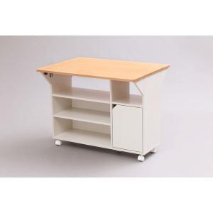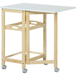萩原 キッチンワゴン MW-3709NW ナチュラル/ホワイト キッチン収納 木製 タイル天板 扉付 キャスター付
