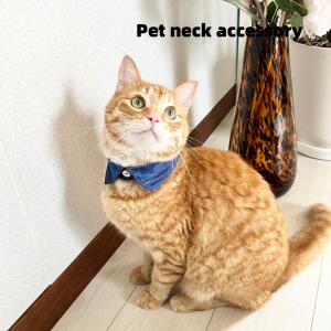 デニム つけ襟 小型犬 猫 ペットネックアクセサリー 犬用首輪 猫用首輪 ペット首輪 デニム つけ襟 ペットカラー