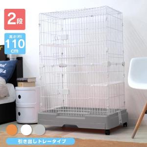 キャットケージ 猫用ケージ 引き出しトレー 2段 猫 ケージ キャスター付き 棚板付き バネ式ロック 簡単組立 ペットケージ ペット 室内飼い おしゃれ