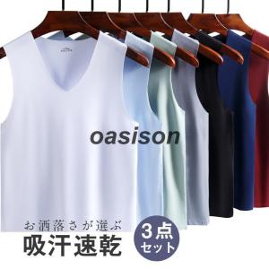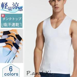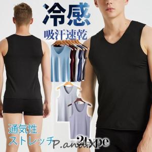 タンクトップ メンズ ノースリーブ Tシャツ 接触冷感 吸汗速乾 Vネック カットソー アンダーウェア 無地 通気性 肌着 極薄 シンプル スポーツ