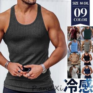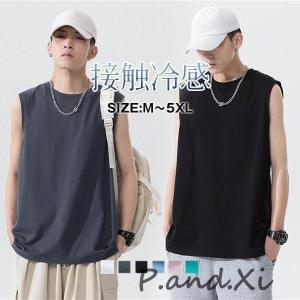 タンクトップ メンズ ノースリーブ Tシャツ カットソー 袖なし 大きいサイズ 夏 接触冷感 無地 ジム 涼しい 吸汗速乾 通気性 大好評