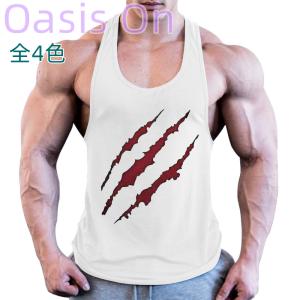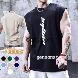 タンクトップ ノースリーブ メンズ トップス Tシャツ プリント 吸汗速乾 春 夏 コットン スポーツ 筋トレ ジム トレーニングウェア ランニング フィットネス