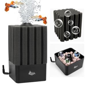 AQQA スポンジフィルター 小型 投げ込み式フィルター ろ材入れる可能 生物ろ過 物理ろ過 エアーリフト酸素増加 淡水海水両用 水槽フィルター