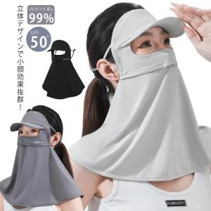 息苦しくない つば付き UPF50 マスク付き フェイスカバー レディース ネックカバー ネックガード サンバイザー つば メンズ 夏 uv 接触冷