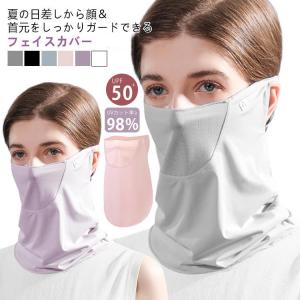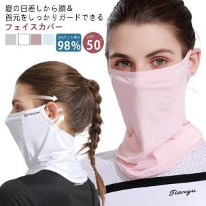 レディース フェイスカバー uvカット 超軽量 ネックカバー 接触冷感 夏 UPF50 登山 通気性 保湿効果 息苦しくない ネックガード 洗えるマ