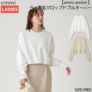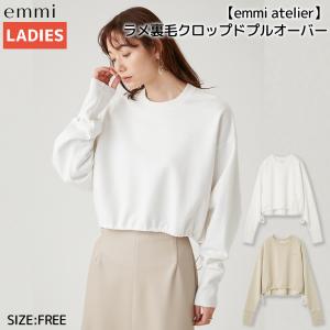 エミ emmi emmi atelier ラメ裏毛クロップドプルオーバー レディース 秋 冬 ホワイト ベージュ カジュアル