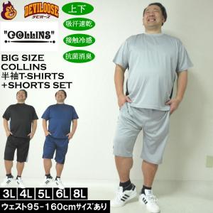 大きいサイズ メンズ COLLINS ハニカムメッシュ脇切替 半袖Tシャツ ハーフパンツ 上下セット(メーカー取寄)コリンズ 3L 4L 5L 6L 8L