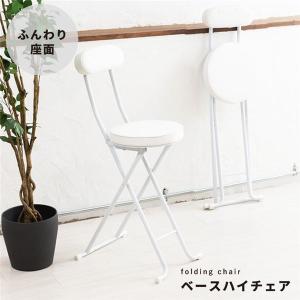 〔2脚セット〕ベースハイチェア(ホワイト/白) 折りたたみ椅子 カウンターチェア 合成皮革 スチール イス 背もたれ付き コンパクト スリム キッチン クッシ...