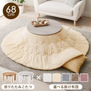 折りたたみ こたつ 薄掛け布団 2点セット 経68cm フランネル生地 掛布団 円形 天板リバーシブル リビング センター テーブル 折れ脚 コンパクト セット 送料無料