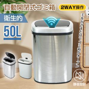 自動開閉ゴミ箱 50L 自動 開閉 便利 ごみ箱 蓋 フタ付き センサー搭載 非接触 家庭 ゴミ袋 大容量 ダストボックス ステンレス 大型 キッチン リビング ny177