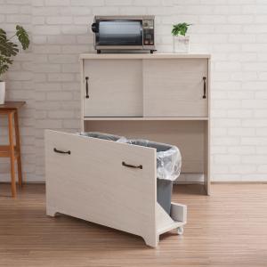 カウンター下収納 幅80 2分別ダストボックス付きキャビネット ホワイトウォッシュ ゴミ箱 リビング ダイニング おしゃれ 木製 収納 敬老の日
