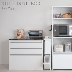 スチール製 ダストボックス 9リットルタイプ 3分別 日本製 キッチン用ゴミ箱 2段 9L ×3 キャスター スリム 薄型 省スペース 隙間 シンク横 敬老の日