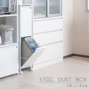 スチール製 ダストボックス 15リットルタイプ 2分別 日本製 キッチン用ゴミ箱 2段 15L ×2 キャスター スリム 薄型 省スペース 隙間 シンク横 敬老の日