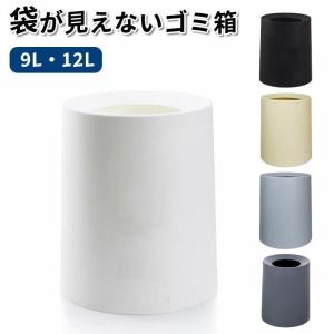 ゴミ箱 ごみ箱 9L 12L 円形 北欧 無地 二重構造 ダストボックス 袋が見えない キッチン 隠す リビング 寝室 大容量 ホワイト イー ブルー
