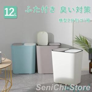 ゴミ箱 ふた付き 2分別ワゴン 蓋つき 臭い対策 ダストボックス プッシュオープン シンプル 台所 生ゴミ 12L 資源ごみ 分別 仕分け ミニ 小型 新生活