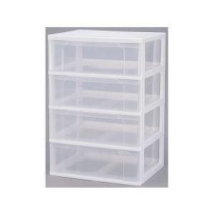 【メーカー直送】アイリスオーヤマ ワイドチェスト 4段 ホワイト/クリア N654【代引不可】【お客様組立】チェスト リビング収納 収納家具 インテリア 収納