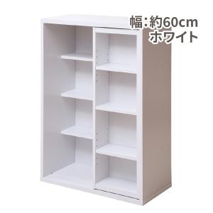 本棚 幅:約60cm 脚は別売 スライド式 マンガ コミック CD DVD 収納 書棚 可動棚 木製 ホワイト 6BOXシリーズ FR-049-WH(メーカー直送)(ラッピング不可)