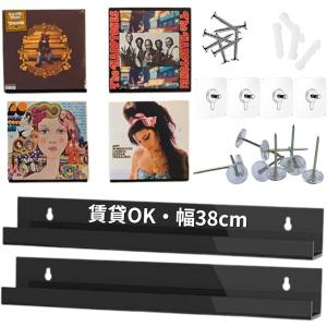レコード レコードラック 壁 幅38cm 壁掛け 賃貸可能 選べる取付方法 ピンorネジorテープ 収納(ブラック, 幅38cm)