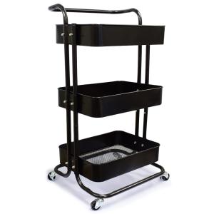 キッチンワゴン 収納 スリム 3段 ベビーワゴン 組立簡単 黒 おしゃれ 北欧 収納ワゴン 隙間収納 30kg耐荷重 キッチン収納 小さい